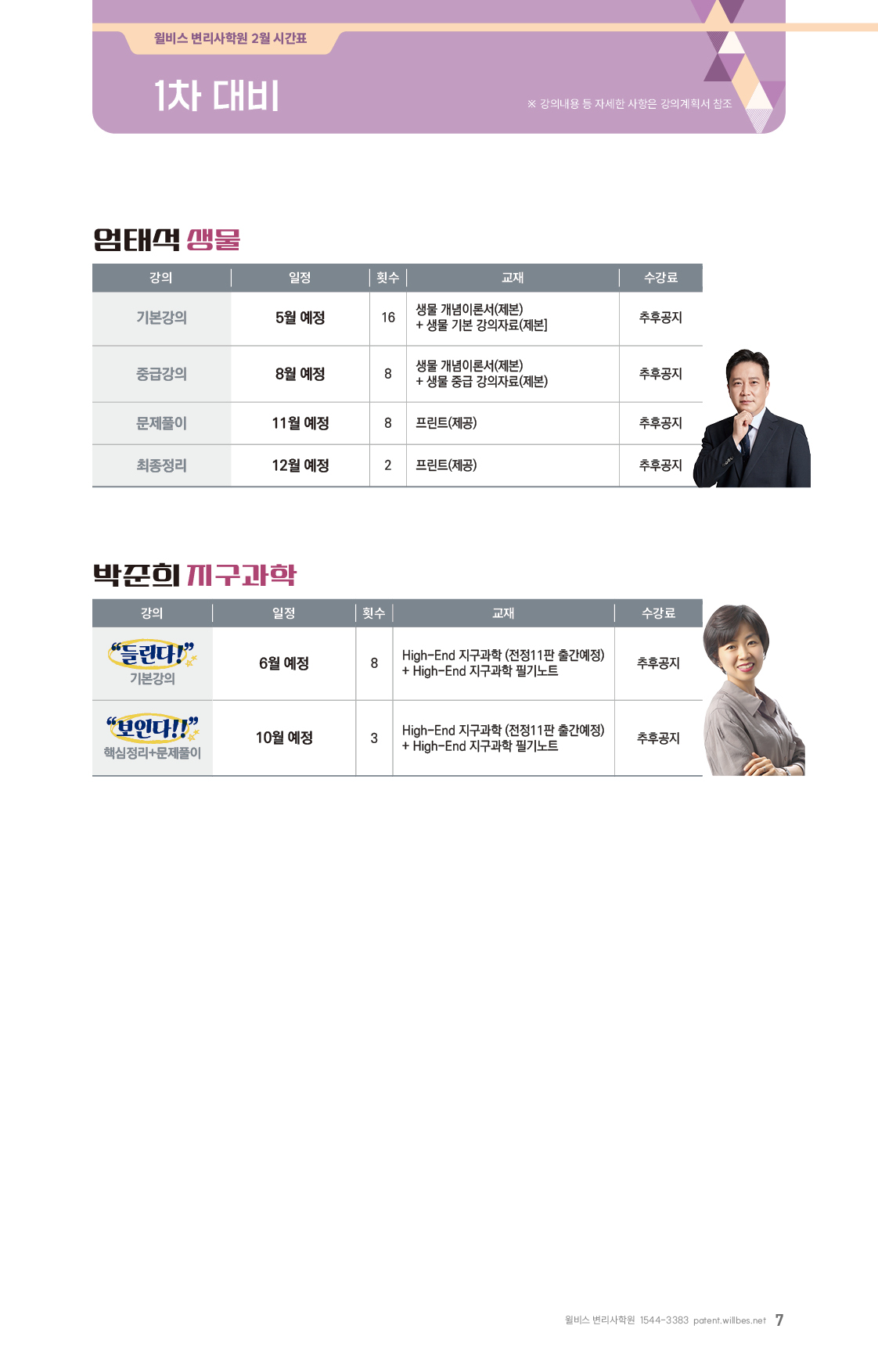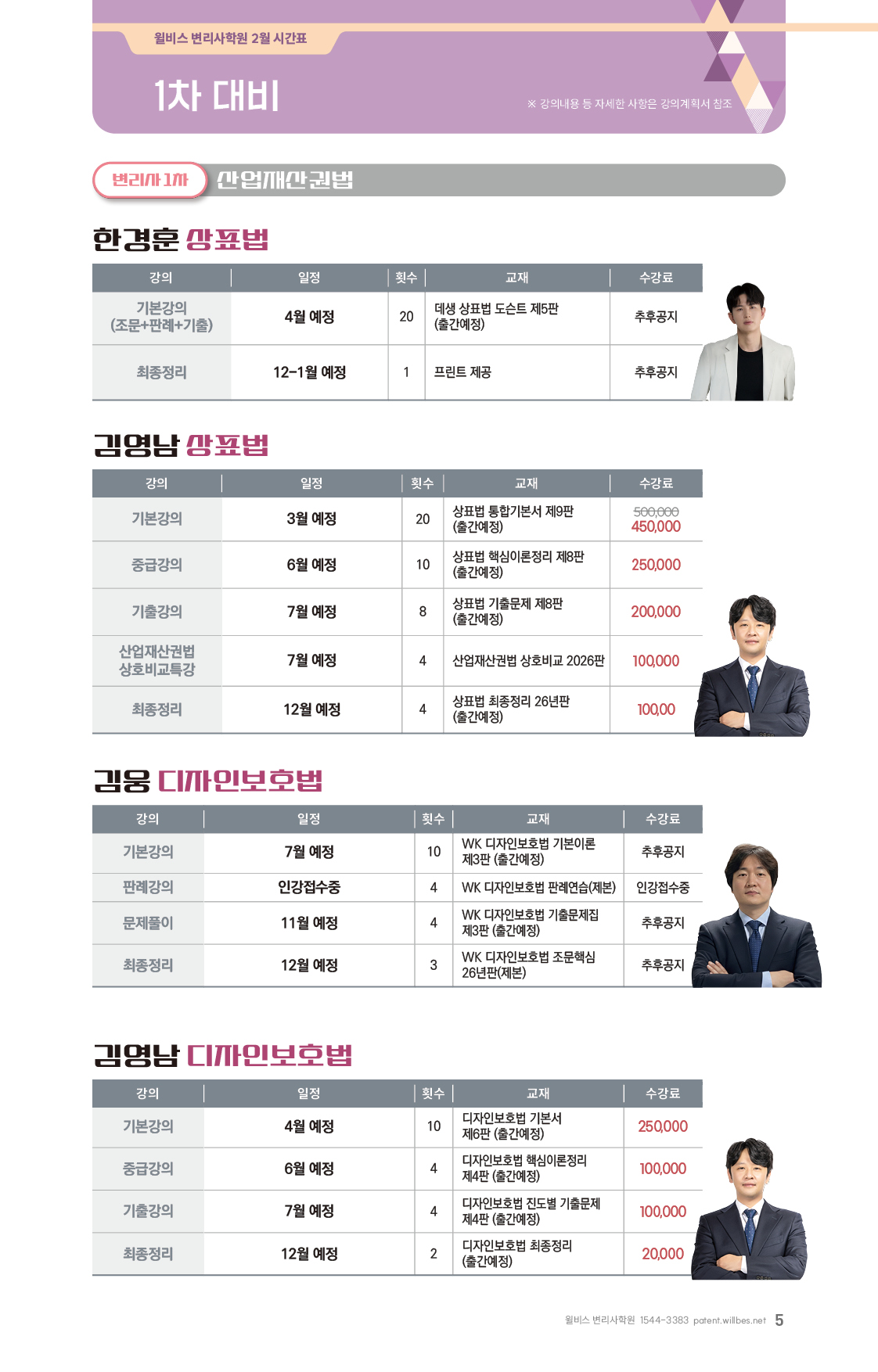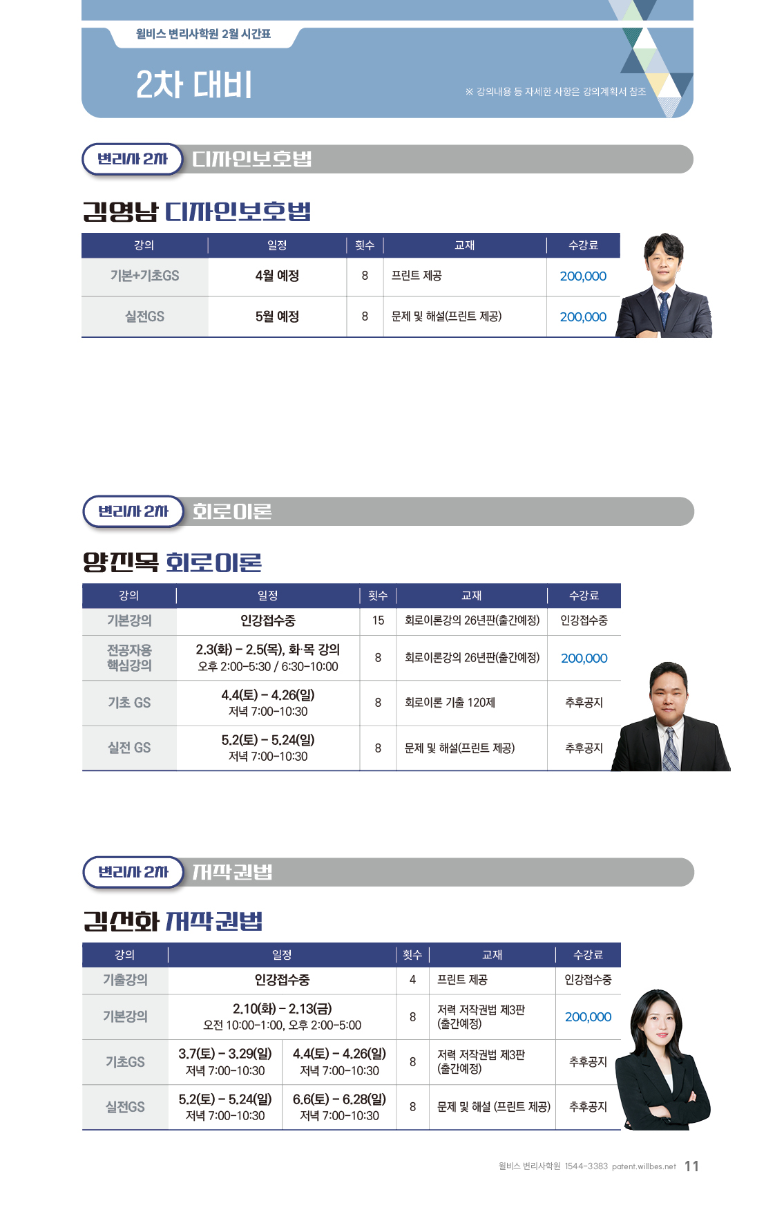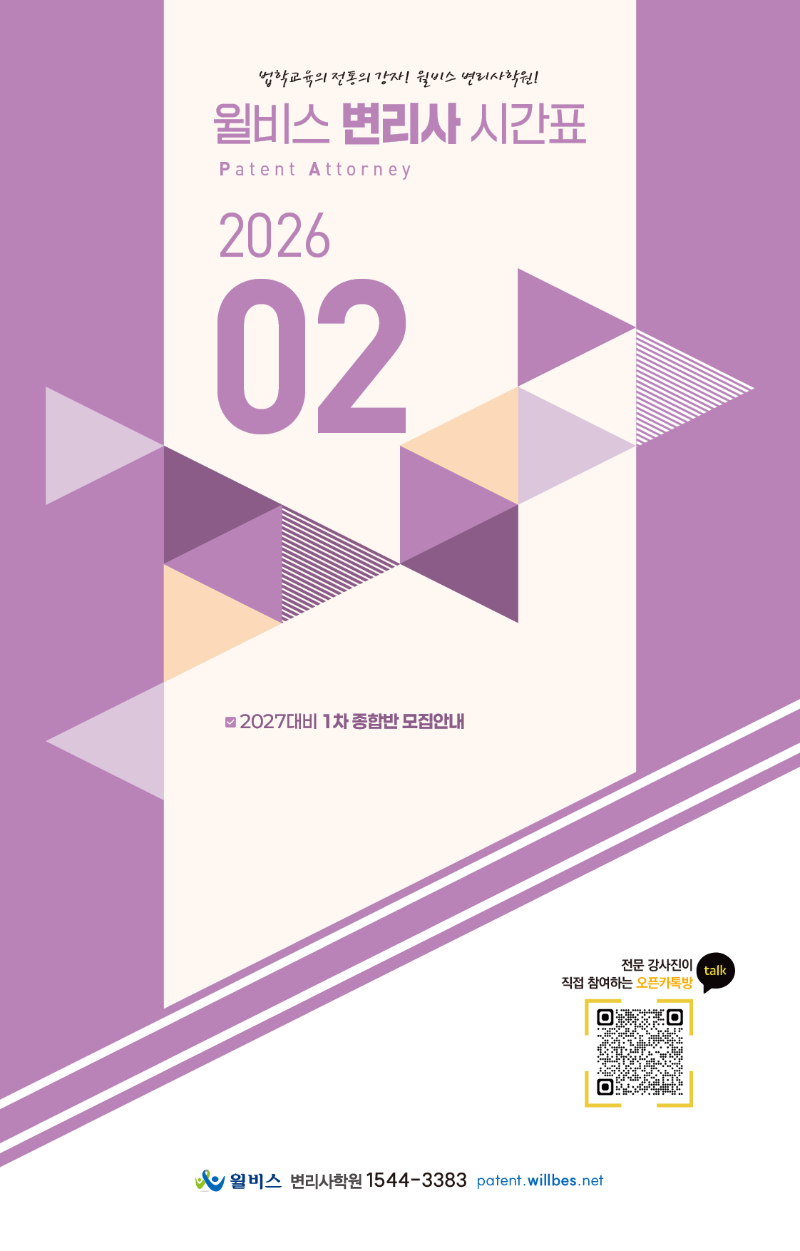 [시간표] 윌비스 변리사학원 26년 2월 강의시간표 안내