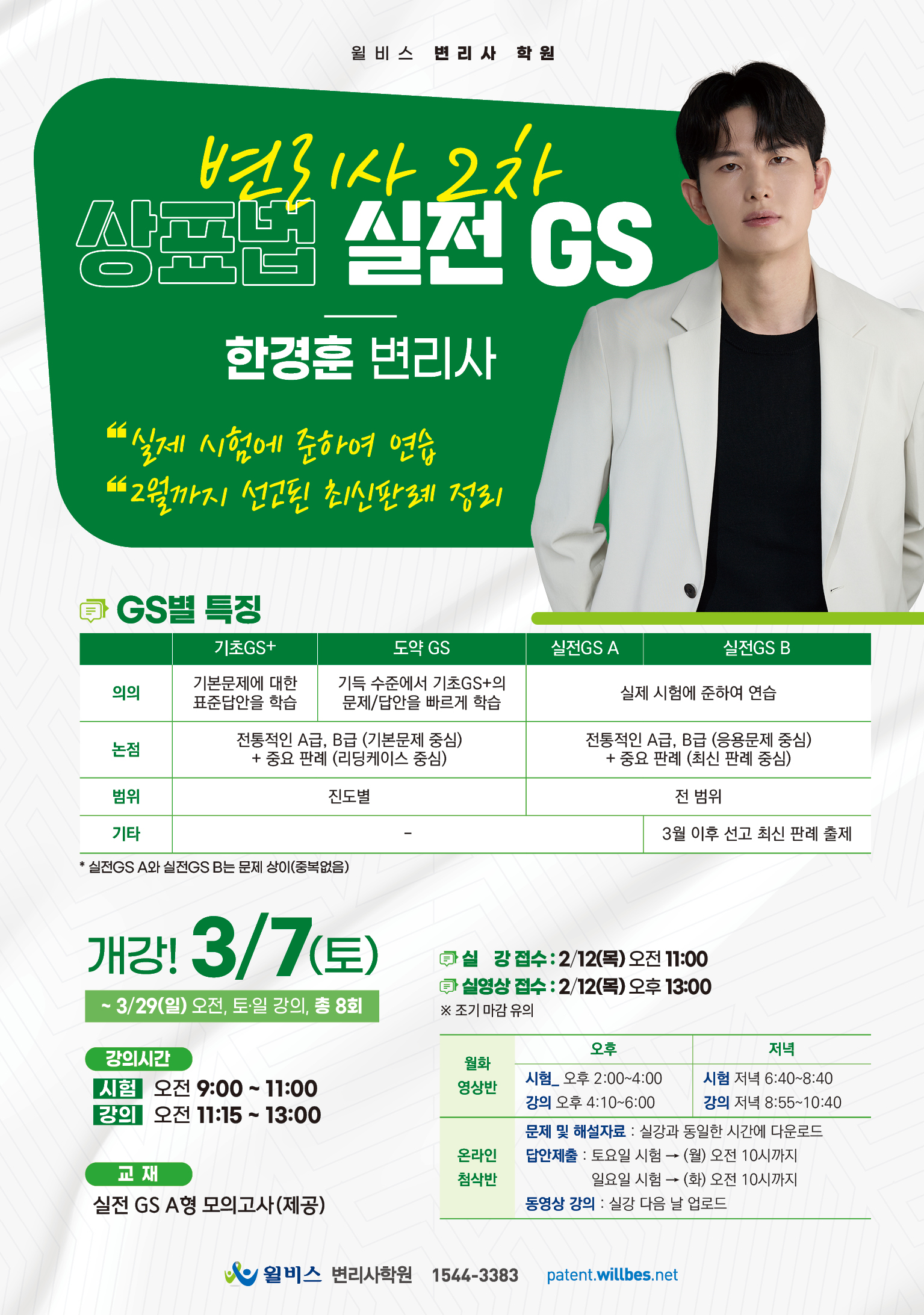 [2차] 한경훈 변리사 상표법 실전GS A형(3.7, 토) - 2.12(목) 11시 접수