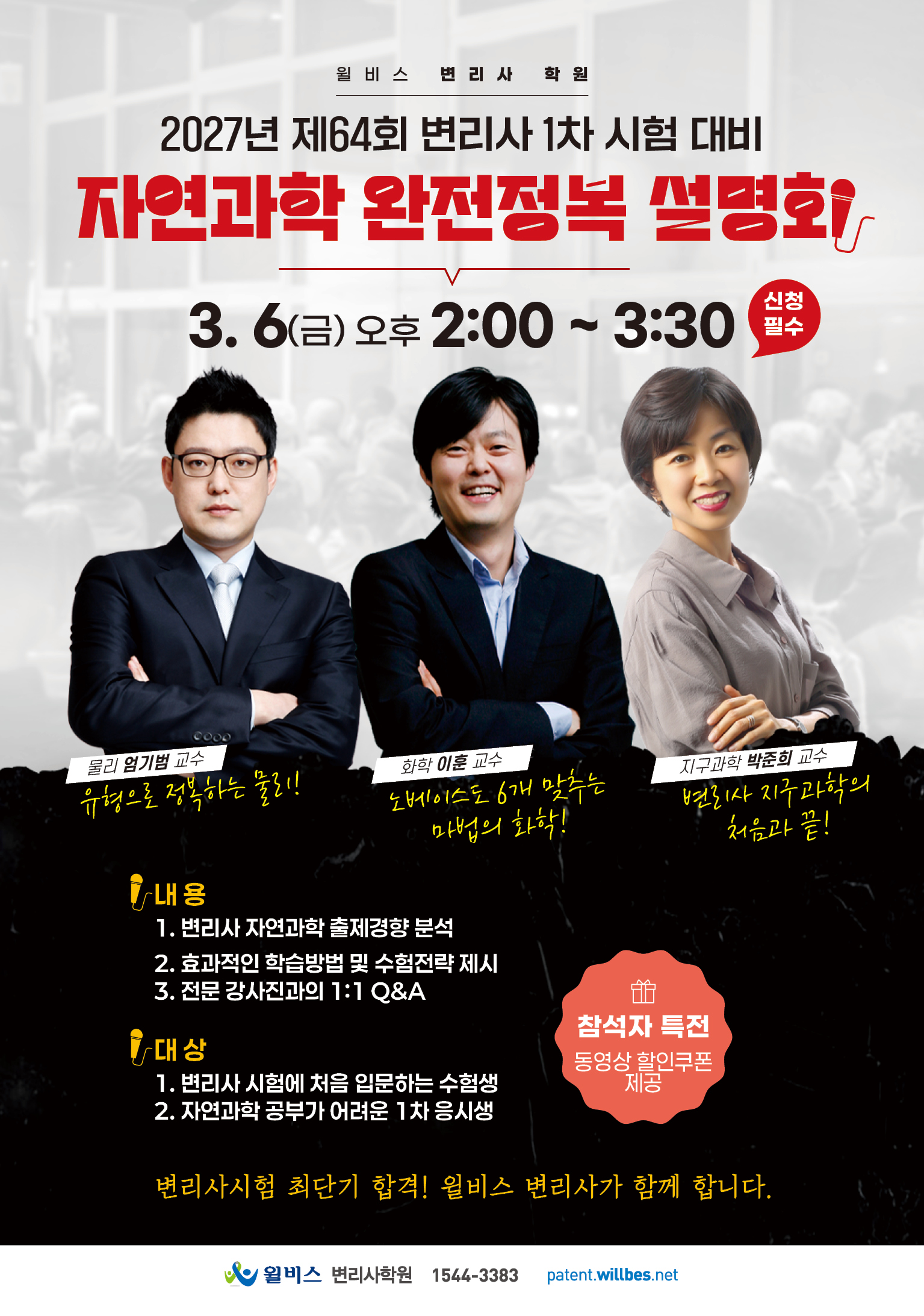 [설명회] 윌비스 변리사 1차 자연과학 설명회 (3.6, 금)