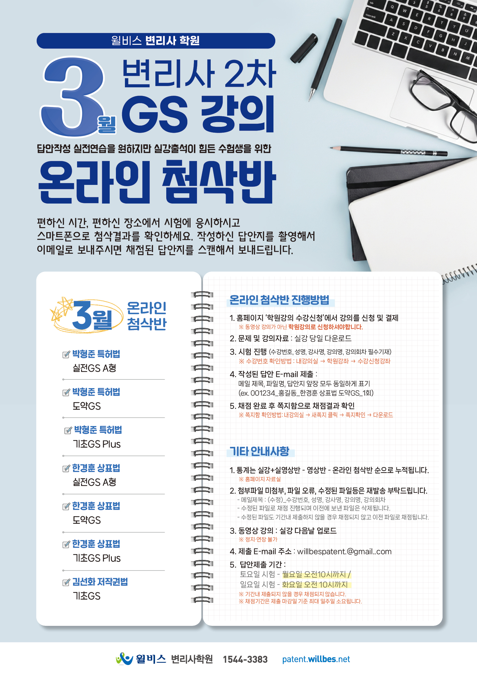 [2차] 윌비스 변리사 3월 GS 온라인첨삭반(3.7, 토) - 2.12(목) 15시 접수