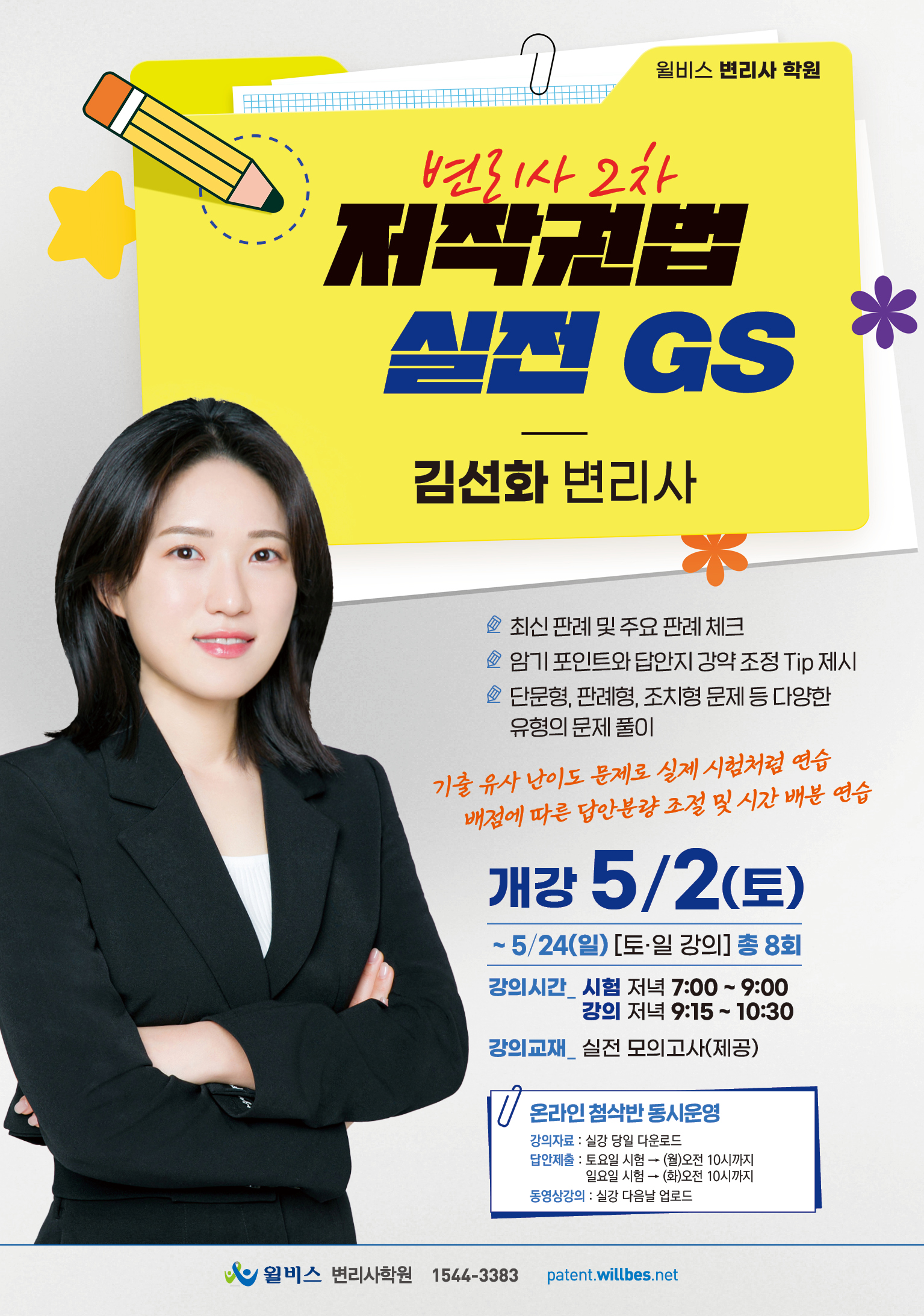 [2차] 김선화 변리사 저작권법 실전GS(5.2, 토) - 4/9(목) 15시 접수