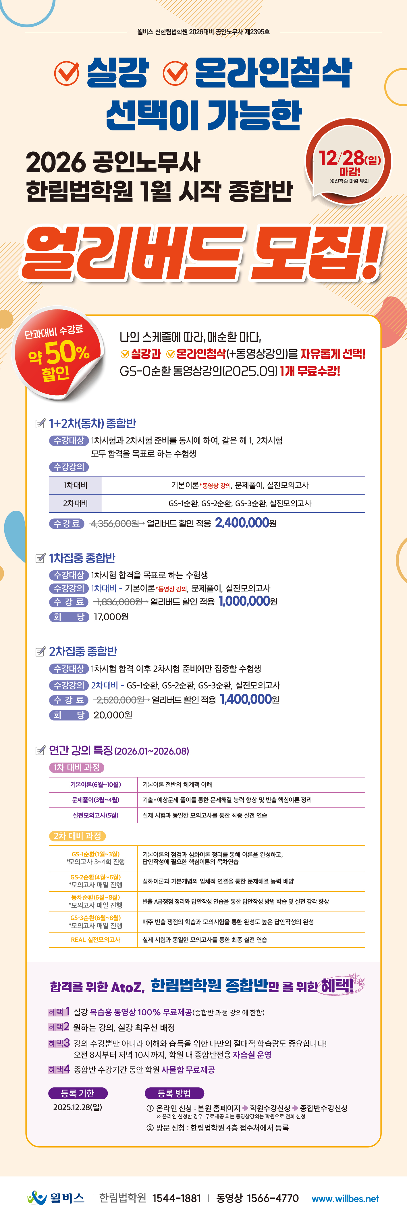 [공지] 2026대비 종합반 - 얼리버드 EVENT(~12/28(일) 마감)