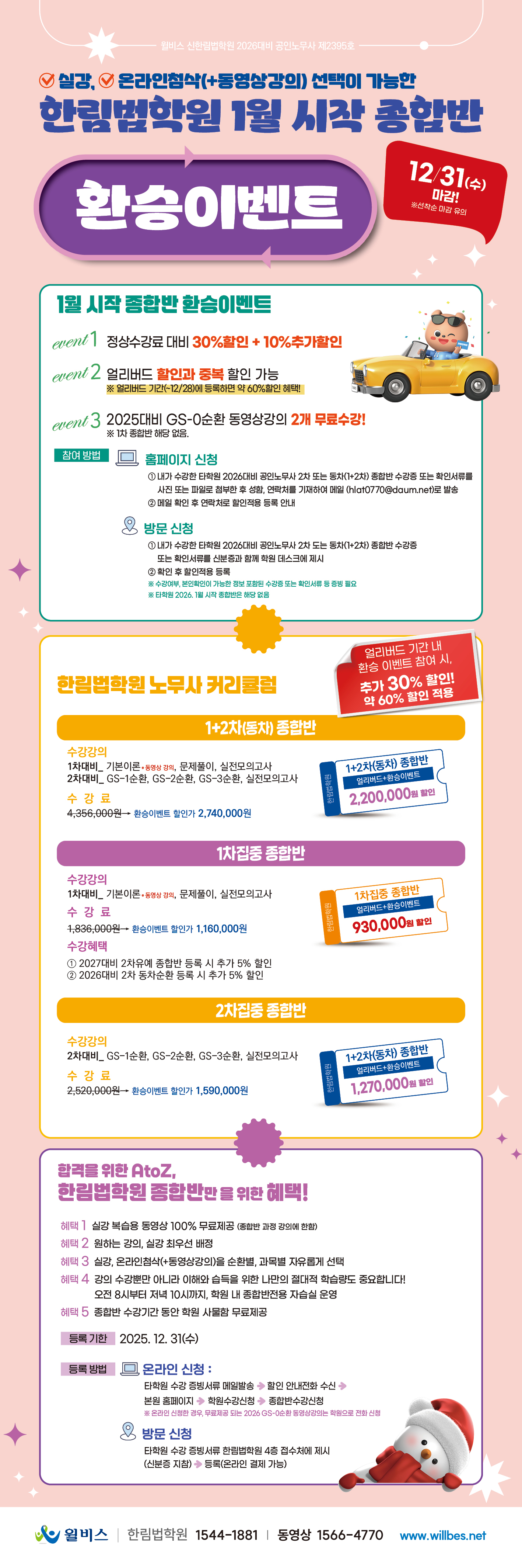 [공지] 2026대비 종합반 - 1월 시작 종합반 환승 EVENT(~12/31(수) 마감)