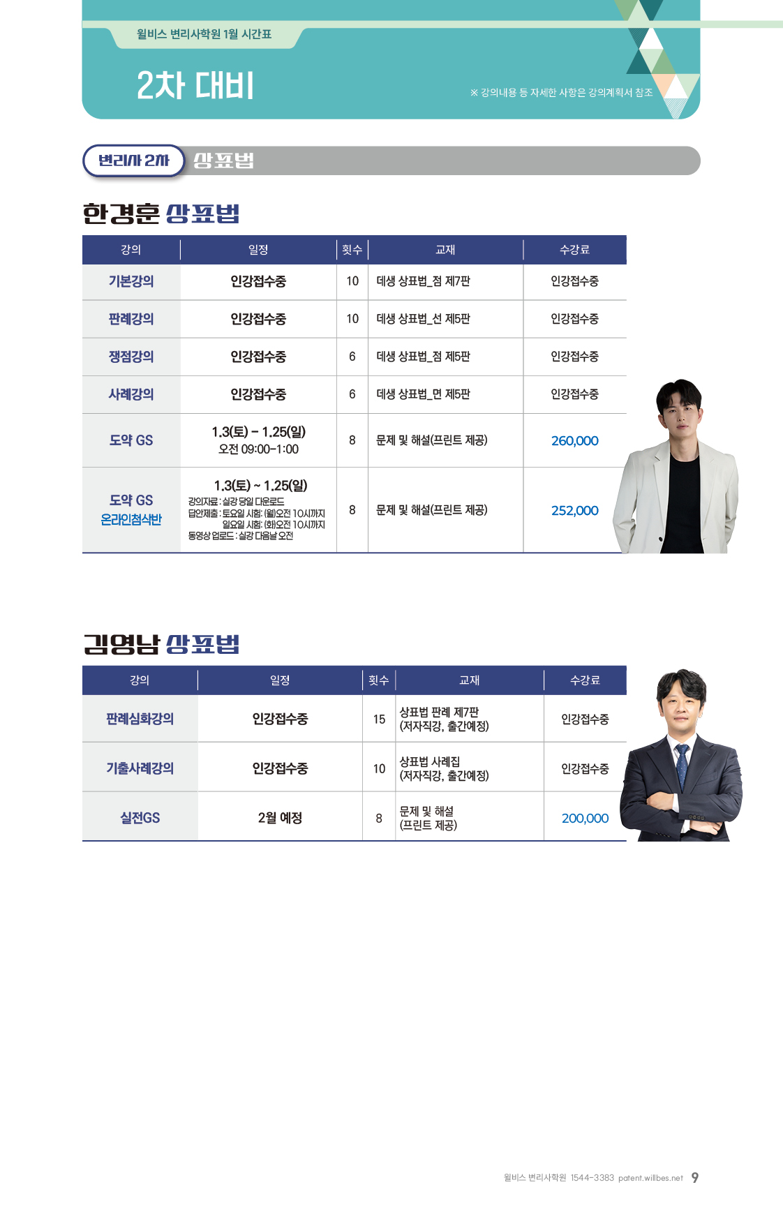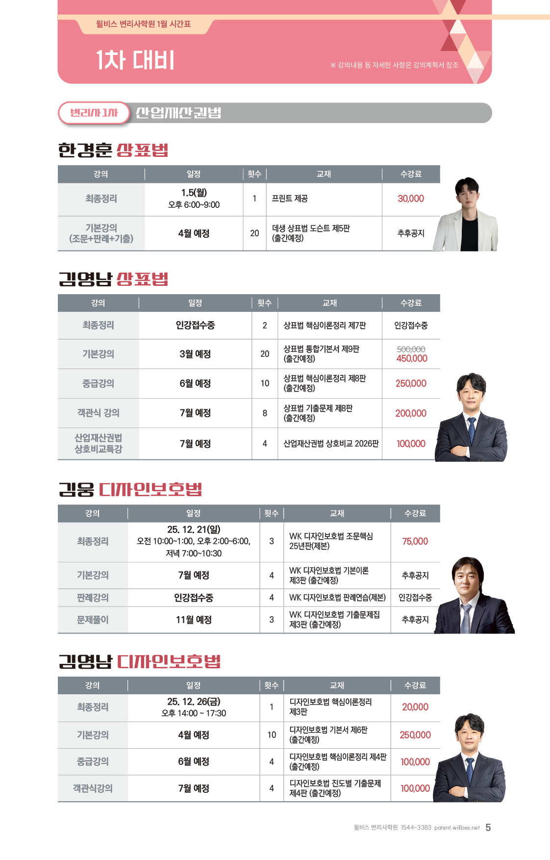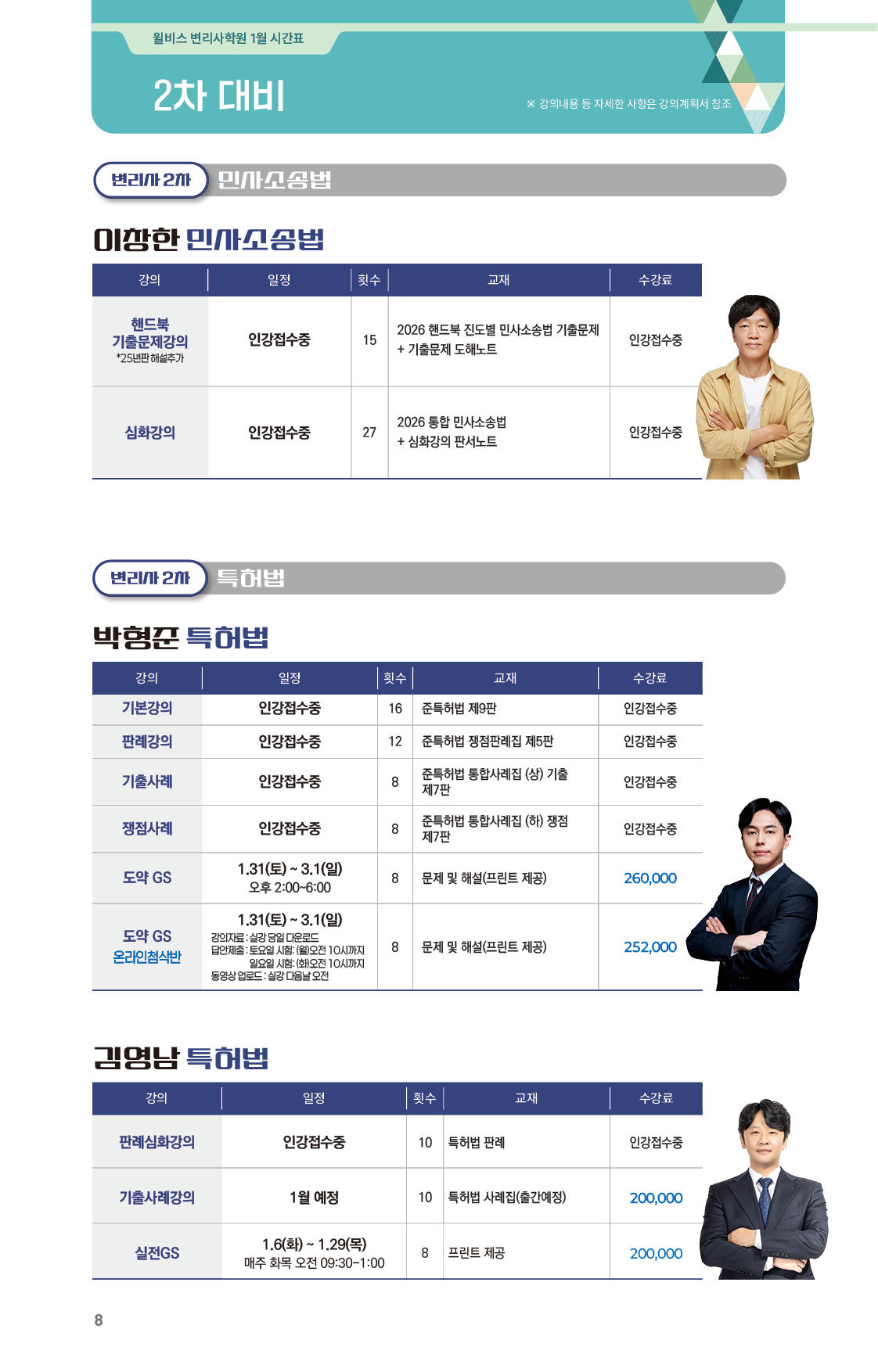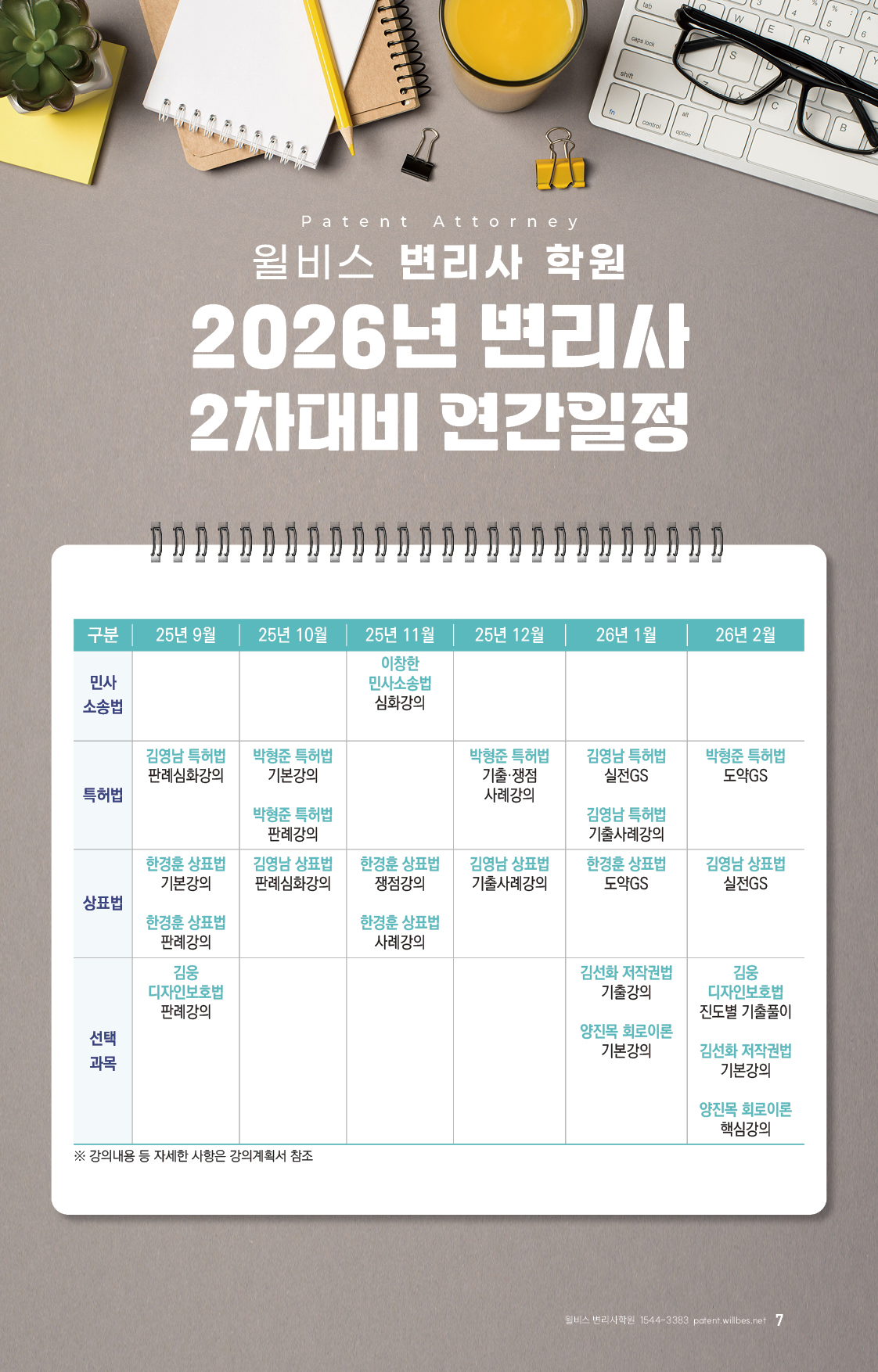 [시간표] 윌비스 변리사학원 26년 1월 강의시간표 안내