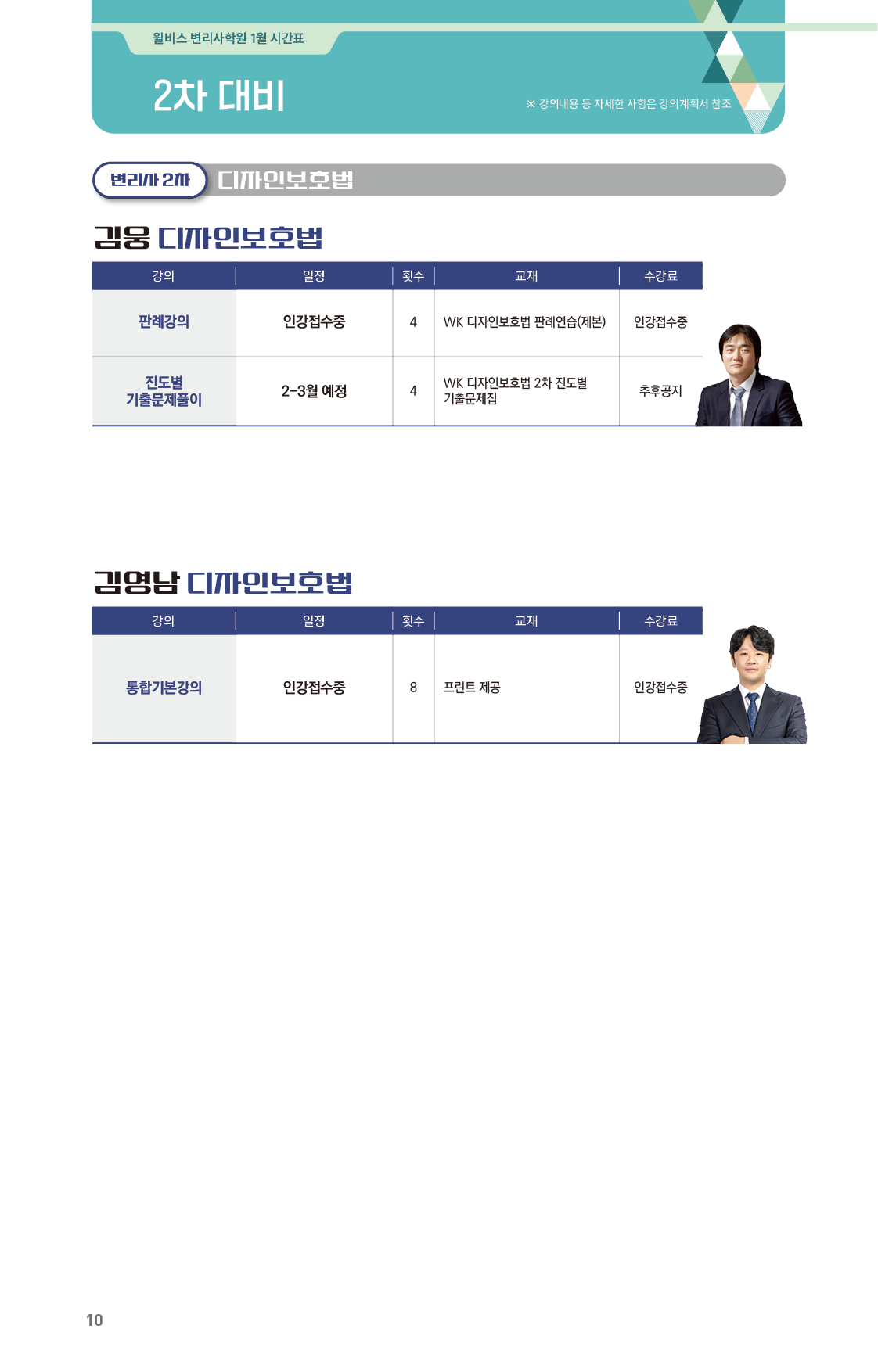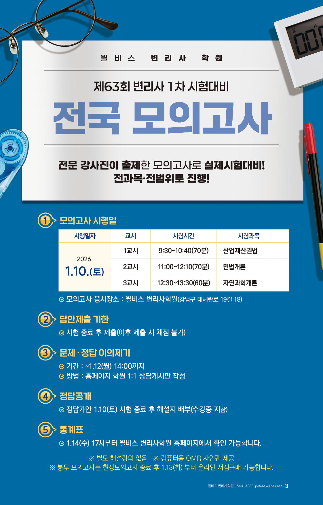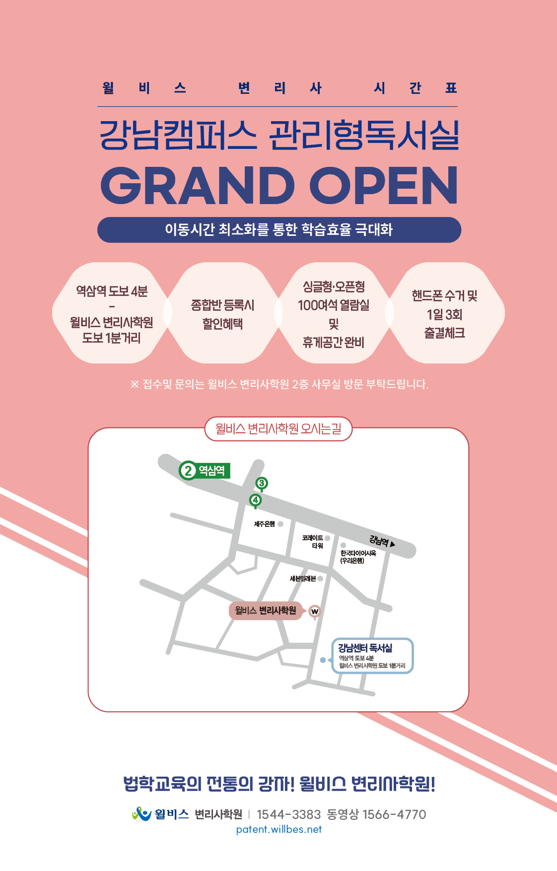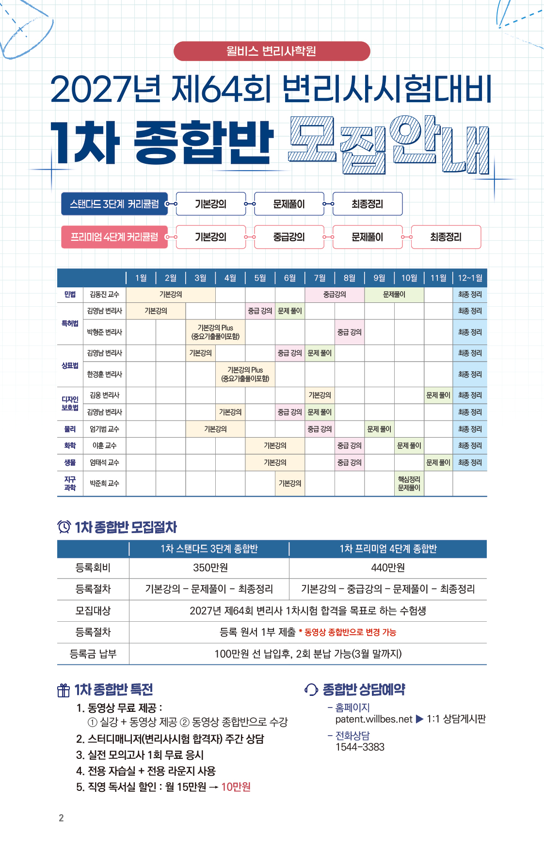 [시간표] 윌비스 변리사학원 26년 1월 강의시간표 안내