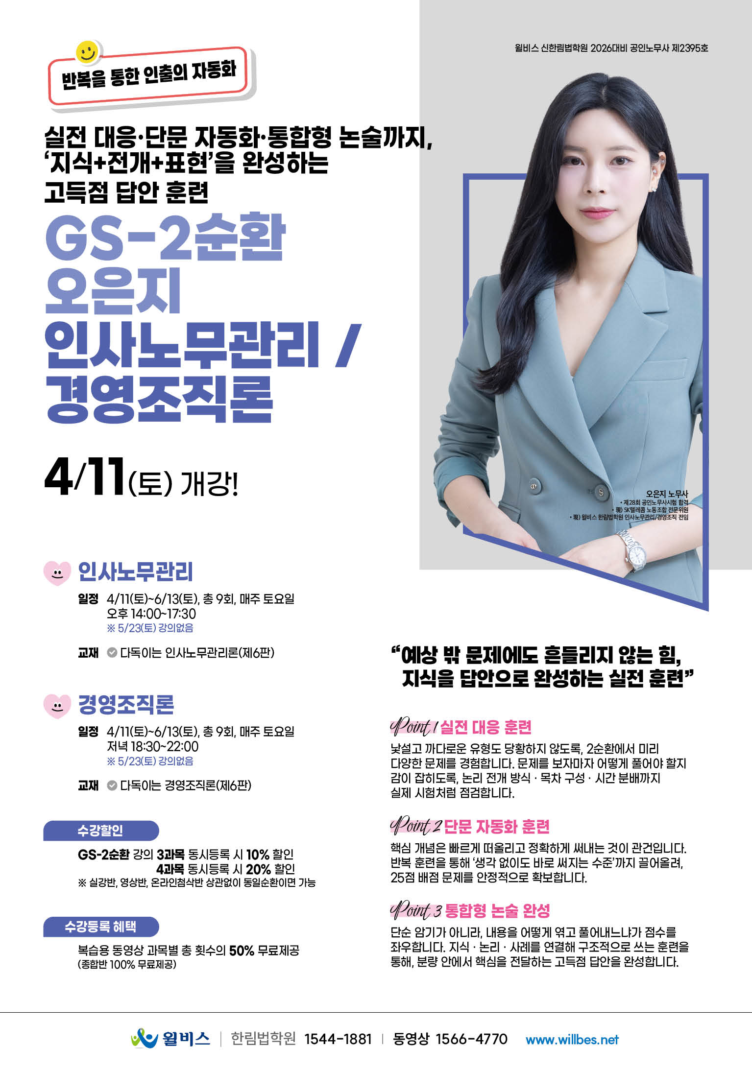 2026 2차 GS-2순환 오은지 인사노무관리론, 경영조직론 - 4/11(토) 개강